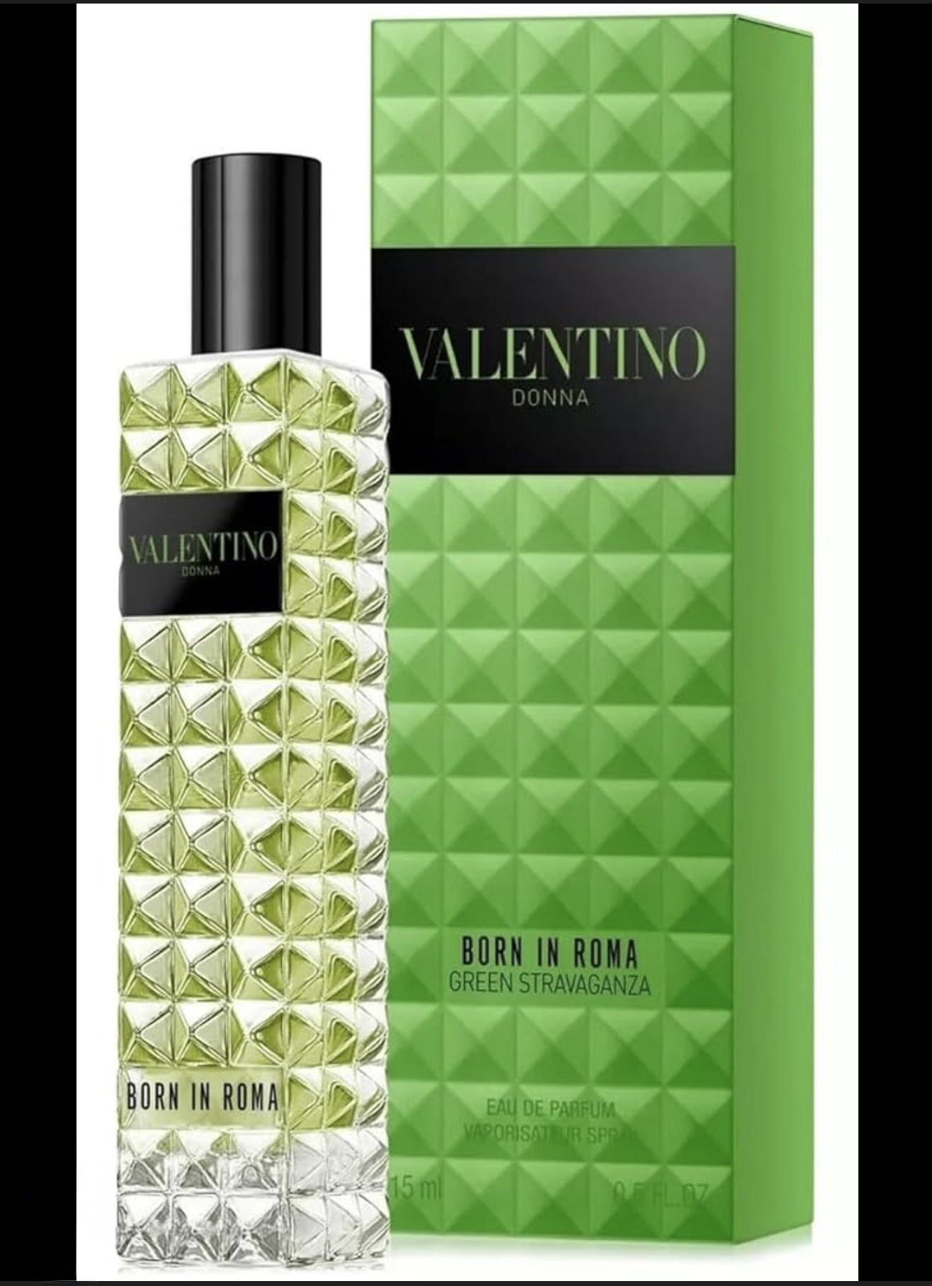 Valentino Donna Born in Roma Green Stravaganza is an ode to freshness and bold femininity. The fragrance opens with a vibrant burst of green tea and citrus notes, creating a bright, uplifting energy. Its heart reveals a delicate floral bouquet, balanced by a base of creamy woods and soft musk, adding warmth and sophistication. Encased in the iconic Valentino studded bottle tinted green, it symbolizes modern elegance with a daring twist.
